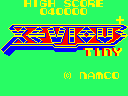 このタイニーゼビウスは電波ソフトの松島さんが中学生の時の力作。普通の人が考える、「きれいな画質で再現性を高める」のではなく、「画質を荒くしてスピードを確保し、なんとかゼビウスにしよう」とした彼の努力を感じてほしい。
