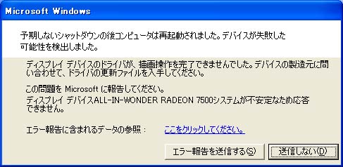 友人との相談を重ね、マザーボードのBIOSやら、チップセットのドライバなどを更新していたが、ことごとくだめ。もちろん、ビデオボードのドライバを最新のものにしてもだめ。