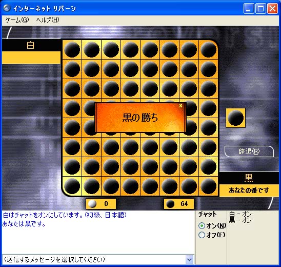 私がwindowsXPを購入したのは、 「インターネットリバーシがやりたいから」なんて全然いってない。(笑)