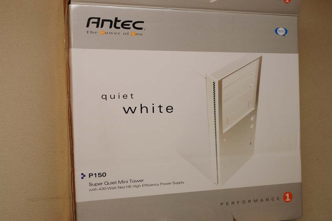 ケースは白のAntec P150。ものすごくしっかりしたケースで、とにかく音が漏れないような構造になっている。 スチール板も厚く、静音ケースとしてはよくできている。 ケースの内側にはでかでかと防音シートが張ってある。