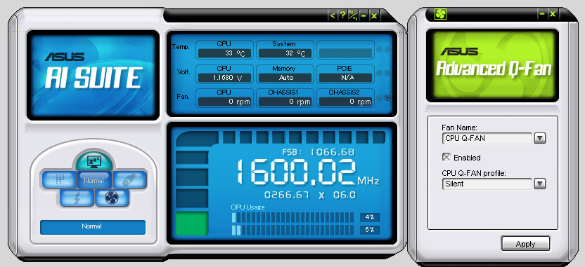 そんなとき、マザーボードに付属しているCDの中のツールをうまく使えば 高周波が消えたという書き込みを発見。advanced Q-fanという画面を出して、 CPU Q-FAN を SILENTにし、CHASSIS Q-FAN もSILENT・・・にしてみたら高周波がほぼ消えた!!!!