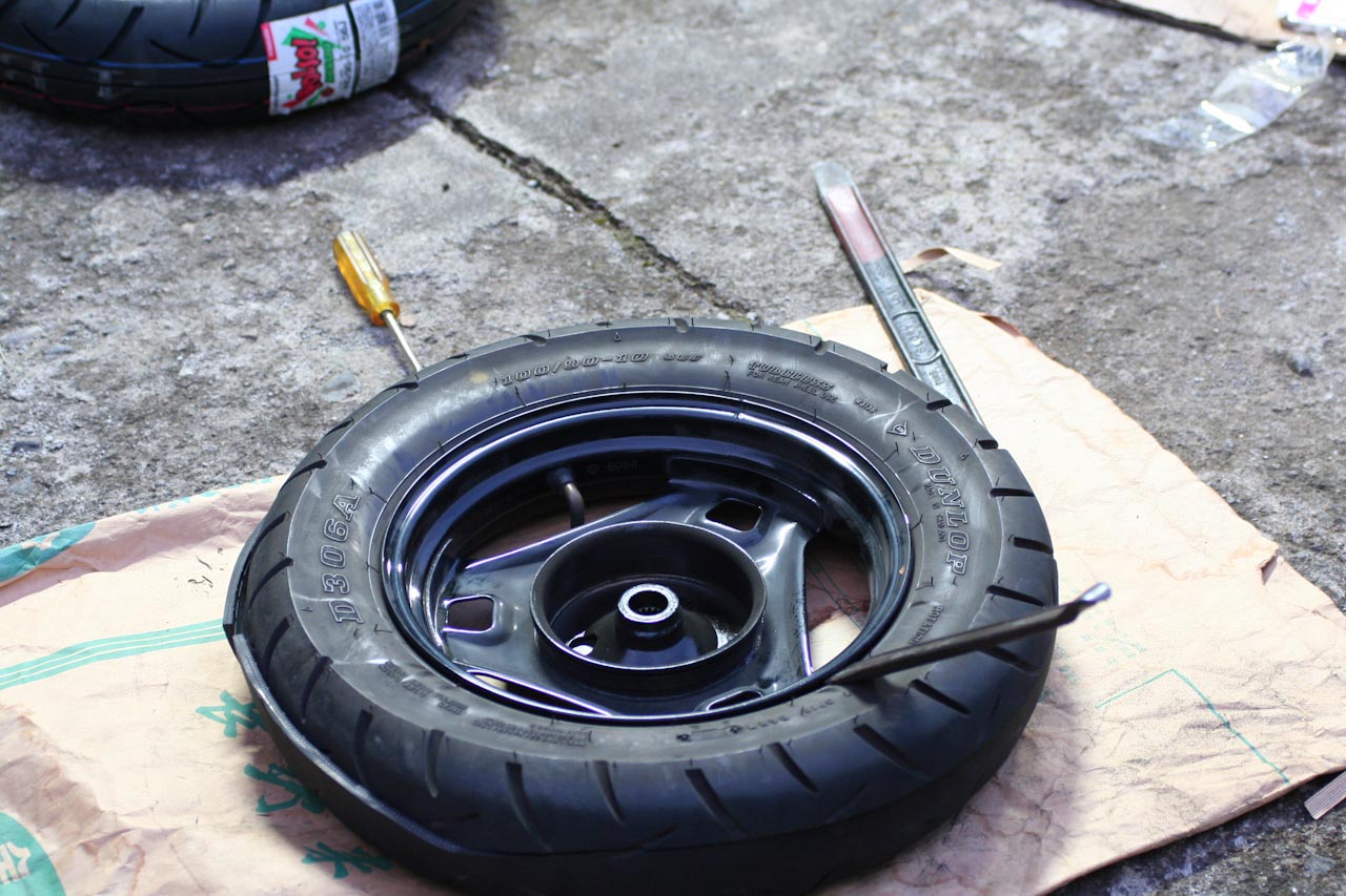 そのアドレスも2年ほど乗っているが、14000キロ近くなってきているので、タイヤがつるつるのつるんつるん。ここはひとつ自分でタイヤ交換をやってみようじゃないか、と思ったわけだ。