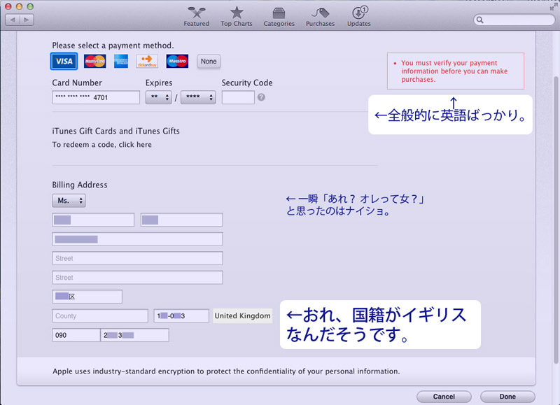ituneStoreにログインしようとした瞬間、また英語で「イギリス人」扱いされる