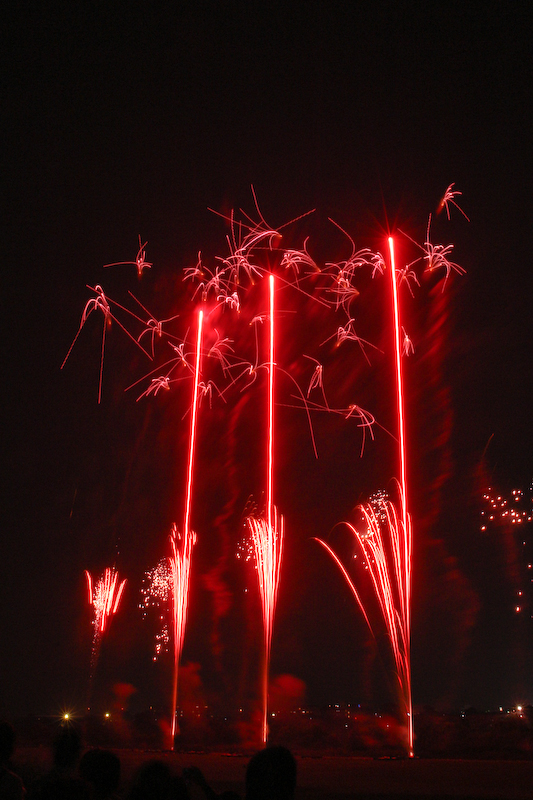次は、名づけて「シャア専用打ち上げ花火」かな。 真っ赤な打ち上げが印象的です。地味ですが、力強さを感じます。