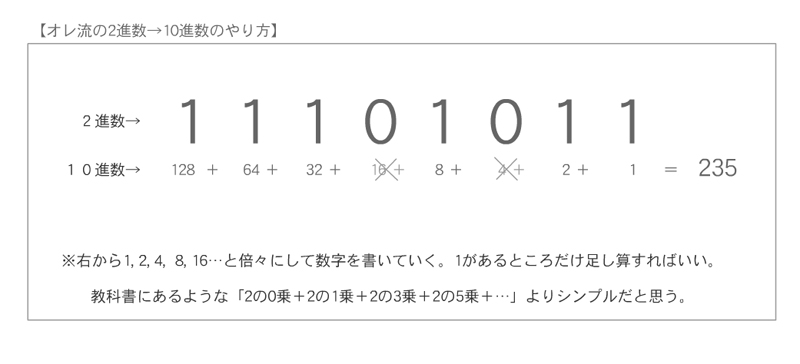 初期の講義も「11101011(二進数)を10進数に変えなさい」とかいう感じだった。