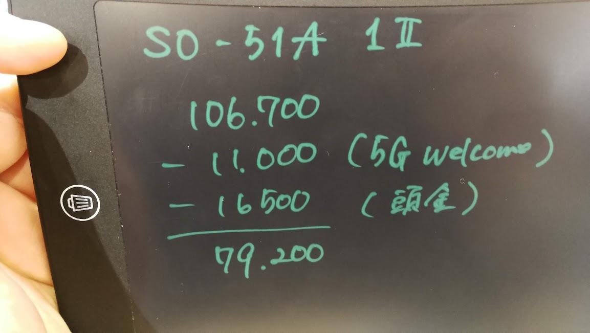 まず、最寄りのdocomoショップにスマホ→5GのXp1Ⅱの値段を教えていただいたらこんなんでました。