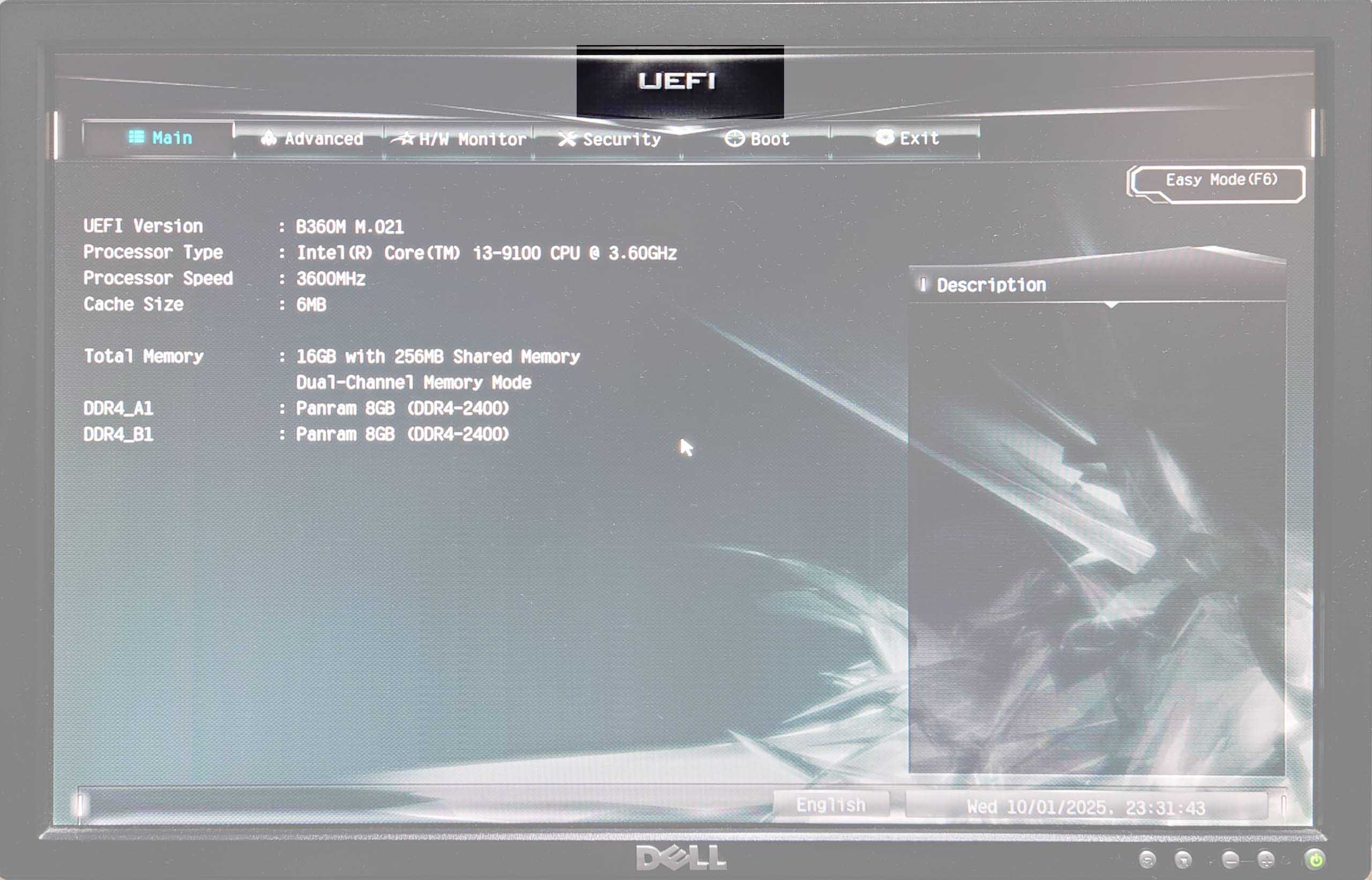 UEFIのバージョンがB360M M.021と出ます。なんだこれ。