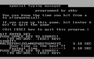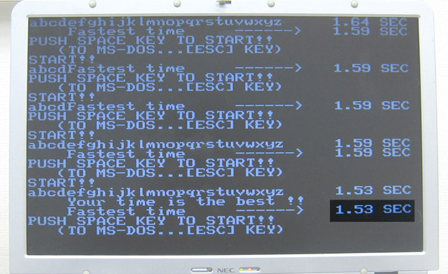 その宇宙人に近づくために、昔々にこんなものを作りました。a から z を順番に打ち込む時間を競うプログラムです。